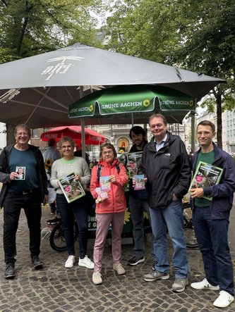 Vom 22. bis 24. August halfen wir mit einigen Mitgliedern den Aachener Bündnisgrünen bei ihrem Kommunalwahlkampf. Für sie geht es am 14. September um viel: Sie wollen ihrer Oberbürgermeisterin zu einer zweiten Amtszeit verhelfen und als Partei ihr starkes Wahlergebnis von 2020 bestätigen. Das und ihre tatkräftige Hilfe im Landtagswahlkampf im Herbst 2024 in Falkensee und Schönwalde war für uns Ansporn genug, ihnen im Wahlkampf etwas unter die Arme zu greifen.