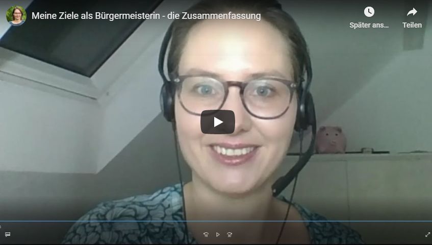 Jeden Donnerstag stellt Anna Mohn in einer Videokonferenz eines der Ziele vor, für die sie mit ihrer Kandidatur als Bürgermeisterin steht - und zeigt auch, was sie bisher getan hat, um diese Ziele zu erreichen.