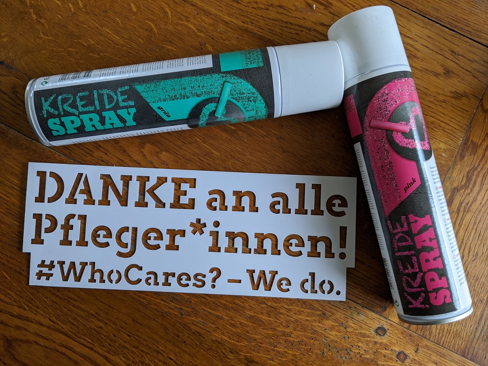 Am internationalen Frauentag machen die Brieselanger Grünen mit einer Aktion auf die fehlende Wertschätzung für Care- und Pflegeberufe aufmerksam. Hierfür hinterließen die Mitglieder der Ortsgruppe mit wasserlöslicher Kreide Dankesbotschaften für Care-Arbeiter*innen vor Pflegeeinrichtungen und Kindergärten in der Gemeinde.