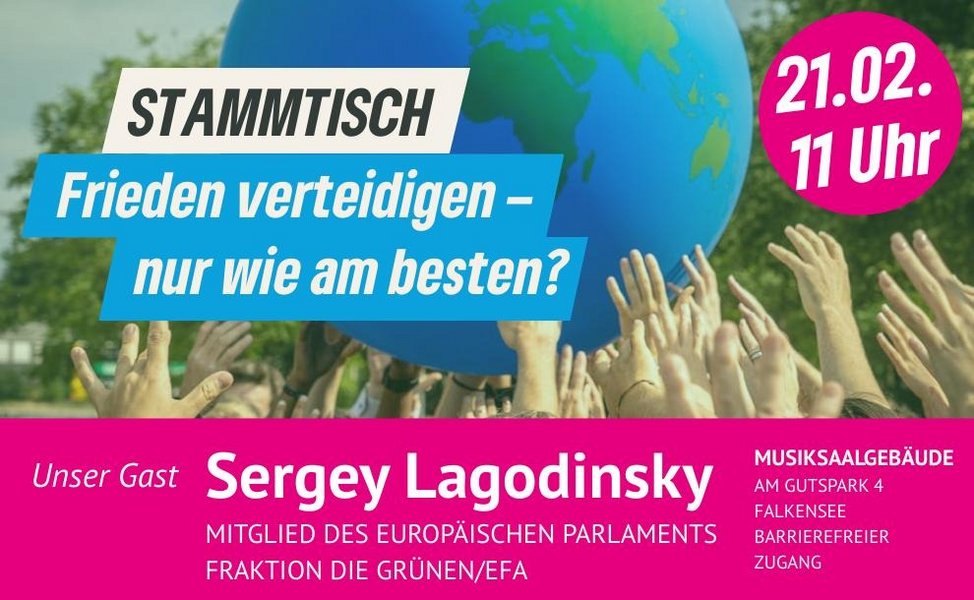 zusammen mit dem Kreisverband Oberhavel und der Bündnisgrünen Landesarbeitsgemeinschaft Frieden, Entwicklung & Migration laden wir euch herzlich zu unserer Diskussionsveranstaltung am 21. Februar ab 11 Uhr im Falkenseer Musiksaal ein!