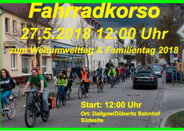 Am Ziel erwartet uns nicht nur ein kleines ökologisches Volksfest, nämlich der Weltumwelttag Falkensee sondern auch ein Stand des Falkenseer Ortsverbandes und ein Musical, das um 15 Uhr in der Falkenhagener Kirche aufgeführt wird.