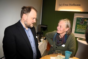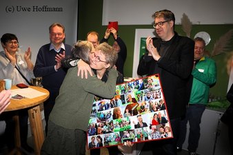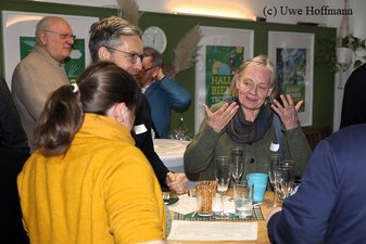 Zu den Gratulanten, der früheren Kreissprecherin, gehörten neben den derzeitigen Kreisverbandssprechern Dr. Antje Töpfer und Frank Voßnacker auch Landessprecher Clemens Rostock, der mit Petra Budke bereits 2014 bis 2019 Landesprecher und 2019 bis 2024 Landtagsmitglied war und der Brandenburger Bundestagsabgeordneter Michael Kellner.