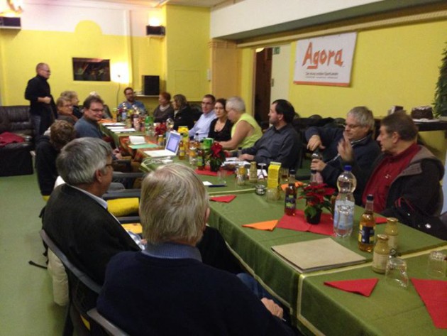 Gut gelaunt trafen sich in den Räumen des Vereins Agora in Brieselang mehr als zwanzig Bündnisgrüne aus dem Havelland zur letzten Kreismitgliederversammlung (KMV) im Jahr 2013. Sprecher Frank Voßnacker betonte rückblickend, dass beide Wahlen in diesem Jahr erfolgreich waren. Kreisschatzmeister Michael Lange berichtete, dass sich die Mitgliederzahl trotz einiger Weggezogener nun bei 105 stabilisiert hat. Zur guten Stimmung trug auch die hervorragende Verpflegung mit Getränken und Kuchen bei, die Corinne t’Hart als Gastgeberin organisiert hatte.
