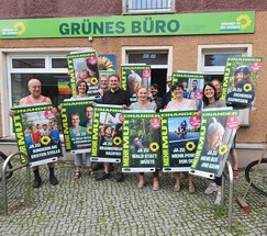 Am 23. Juli starteten wir auch in Falkensee in die heißere Wahlkampfphase (und auch Jahreszeit). Der Ortsvorstand Falkensee und Petra Budke, unsere aktuelle Fraktionsvorsitzende im Landtag und Direktkandidatin für Wahlkreis 6 (Falkensee, Dallgow-Döberitz und Schönwalde-Glien), hatten an dem Tag ab 17 Uhr am Grünen Büro in der Potsdamer Straße zum gemeinsamen Auftakt geladen, um die Plakate abzuholen, aufzuteilen und die erste Welle davon an die Laternen zu bringen.