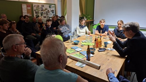 Zuletzt wandte sich die Teilnehmenden der Situation im Havelland zu. Mehrere Anwesende berichteten von ihren ehrenamtlichen Aktivitäten, zum Beispiel bei den Falkenseer Bürgersolaranlagen. Michael Kellner hörte sehr interessiert und beeindruckt zu. Er versprach zu unterstützen und konstatierte abschließend: „Die Energiewende bietet für das Havelland enorme wirtschaftliche Chancen. Entscheidend ist, dass die Menschen vor Ort von dieser Entwicklung profitieren und aktiv eingebunden werden. Mit Wind- und Solarenergie können wir nicht nur einen wichtigen Beitrag zum Klimaschutz leisten, sondern auch regionale Wertschöpfung und Arbeitsplätze schaffen."